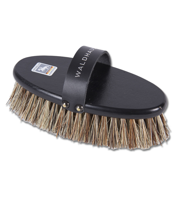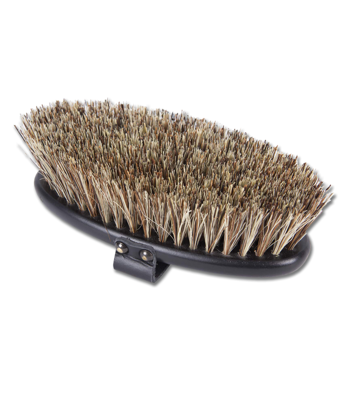 Vysoce kvalitní kartáč s robustními štětinami z přírodních vláken pro odstranění pevných nečistot, jako je bahno, z celého koně.