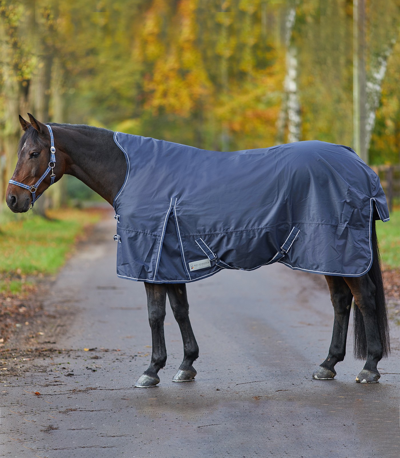 Výběhová deka Economic | vyšší krk | Waldhausen | 200 g/m2 | 135 cm | námořnicky modrá