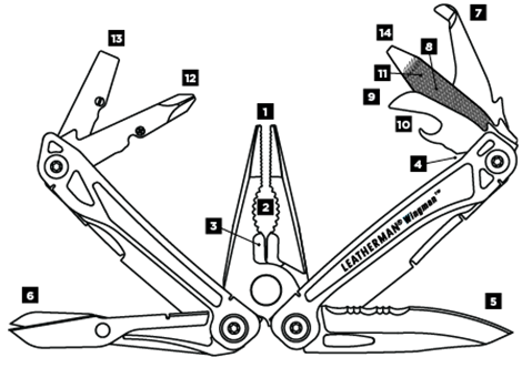 Leatherman WINGMAN je už podle názvu parťák, který Vám pomůže vždy, když si nevíte rady. V lehkém (bez mála dvousetgramovém) a elegantním těle z nerezové oceli skrývá Wingman 14 praktických nástrojů, přičemž nůž s kombinovanou čepelí i vysoce funkční nůžky na vnější straně nástroje otevřete pohodlně palcem jedné ruky. Kombinovaný otvírák na láhve a na konzervy obsahuje také odstraňovač kabelové izolace. Samozřejmostí, jako u drtivé většiny multitoolů Leatherman, jsou multifunkční kleště (kombinačky i štípačky) s pružinovým mechanizmem a tři šroubováky (křížový, plochý a malý). Komplexní sadu nářadí uzavírá pilník na kov, dřevo i nehty a univerzální řezák na balíky či krabice. Wingman je jednoduchý, ale velice výkonný parťák, na kterého se můžete kdykoli spolehnout.