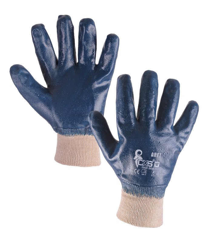 Pracovní rukavice ARET, máčené v nitrilu, modré, vel.10